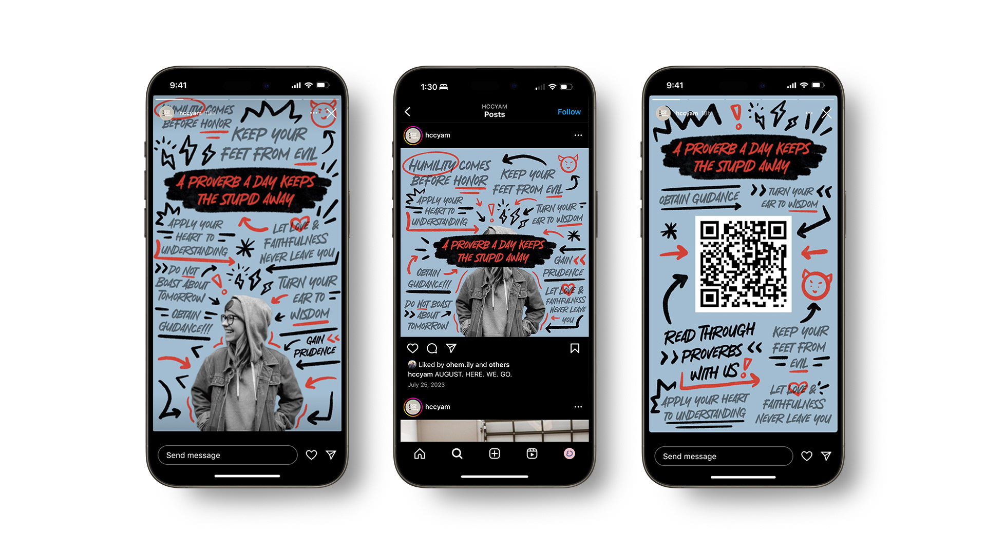 Campaign design for the Young Adults Ministry at Hillside Community Church. It is designed to encourage young adults to read one proverb daily. I took the design lead on this project and created assets that extend across web and social platforms.